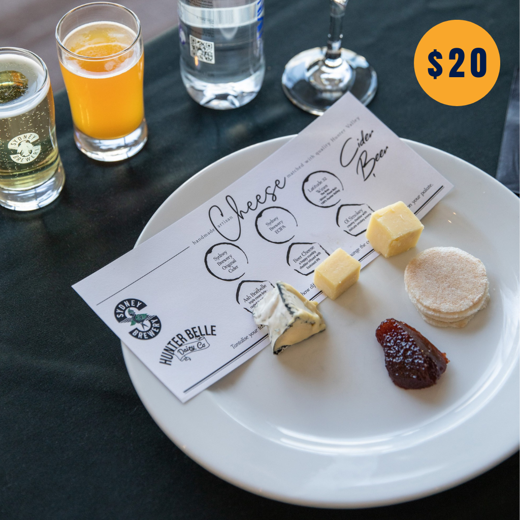 Discover the art of flavour pairing in this guided tasting experience, perfect for both curious newcomers and seasoned sippers. Enjoy a handpicked selection of premium beer, and cider, each expertly matched with artisan cheeses and crackers from the renowned Hunter Belle Dairy Co.